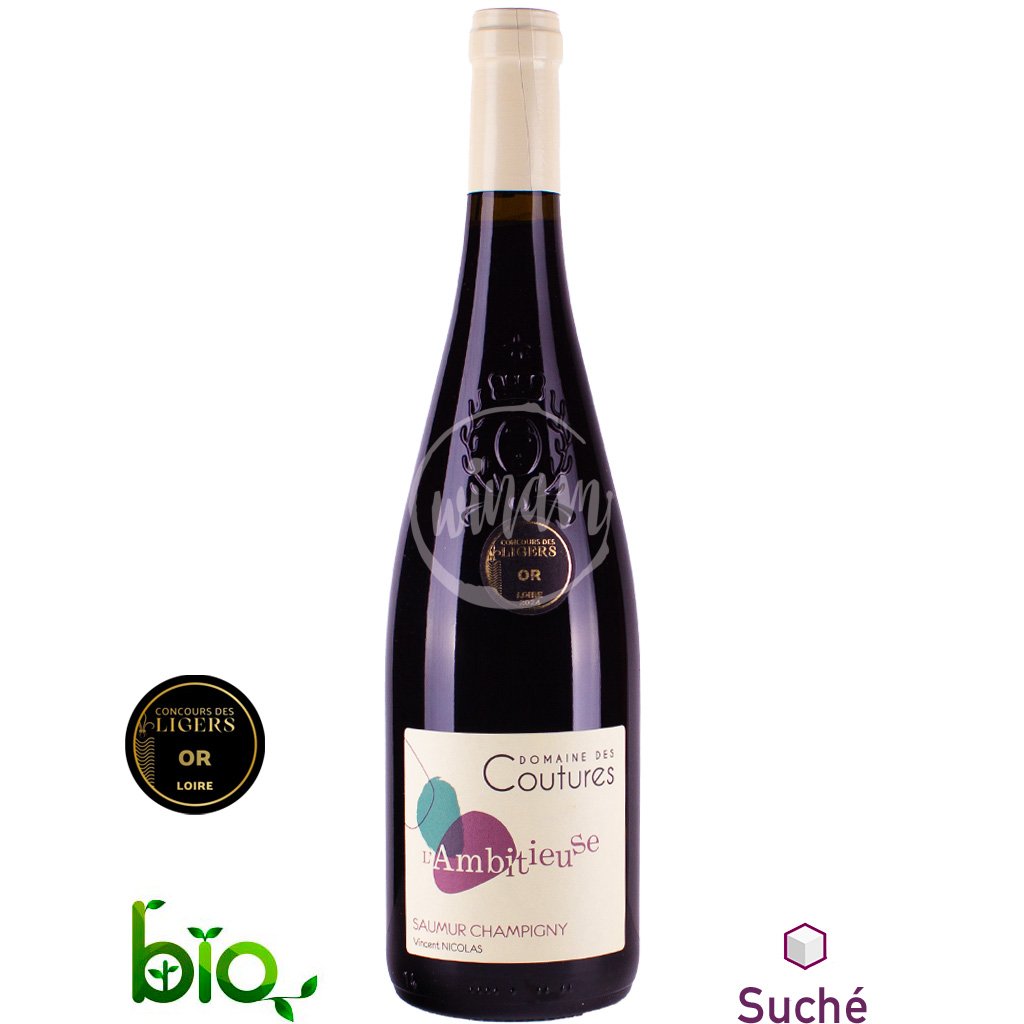 Vinařství Domaine des Coutures v údolí řeky Loiry se již 5 generací řadí k těm, kteří řadí kvalitu na nejvyšší příčku. Toto hedvábné červené cuvée z odrůdy Cabernet Franc s podtitulem "L'Ambitieuse" neboli "ambiciózní" je prvním vínem vinařství, pěstovaným a vyrobeným pod hlavičkou BIO. Víno bylo vyrobeno krátkou macerací pro zdůraznění aromat a zachování svěžesti. Ve vůni je šarmantní, s tóny černého rybízu, višní, nového koření a syrového masa. Chuť je hedvábná, sladce ovocná, s tóny čerstvých hroznů, zralých višní a červeného rybízu. Dochuť je dlouhá, ovocná, s třešňovým závěrem. Výborně se hodí k uzeninám, uzenému tuňákovi, grilovanému entrecôte, telecímu nebo jehněčímu masu. Výborně doprovodí třeba klasický zeleninový pokrm Ratatouille