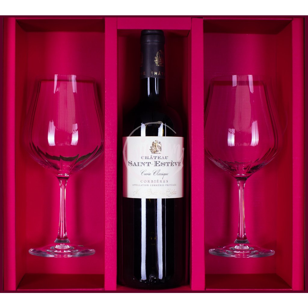 Dárková kazeta s červeným vínem a skleničkami