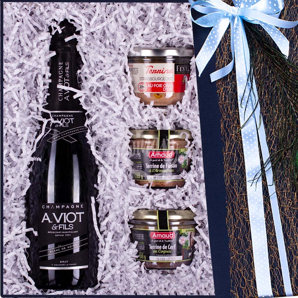 Dárkové víno s šampaňským a delikatesami
