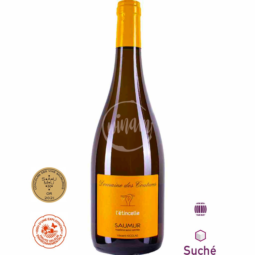 Vinařství Domaine des Coutures v údolí řeky Loiry se již 5 generací řadí k těm, kteří řadí kvalitu na nejvyšší příčku a tento čistě odrůdový Chenin Blanc s podtitulem "L'Étincelle" neboli "jiskra" je toho důkazem. Víno zrálo na kvasničných kalech a v dřevěných barikových sudech a díky tomuto způsobu vinifikace nabízí komplexní vůně akátu, exotického liči, meruněk a kandovaného ovoce, spojené s příjemnými barikovými tóny. Vhodný k pokrmům z ryb, zeleninovým salátům a světlým grilovaným masům. Doporučujeme vyzkoušet také s jednoduchou chuťovkou - bylinkovými šneky z listového těsta.