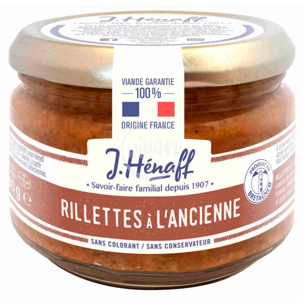 Rilety jsou tradiční francouzská masová pochoutka z pomalu dušehého masa, které se konfituje v tuku, až se rozpadá na vlákna - tato klasická francouzská masová specialita z vyhlášeného Maison Hénaff byla vyrobena bez konzervantů a barviv. Výborně chutná s čerstvým chlebem a plným červeným vínem!