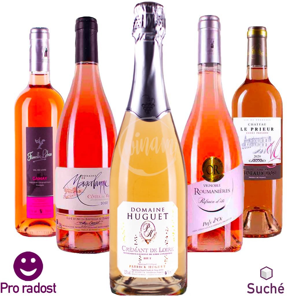 - Kdo ocení tuto sadu: Milovníci lehkých ovocných rosé, kteří chtějí poznat různé styly růžových vín z celé Francie — od šumivého přes svěží cuvée z Loiry až po exotické víno z Bordeaux