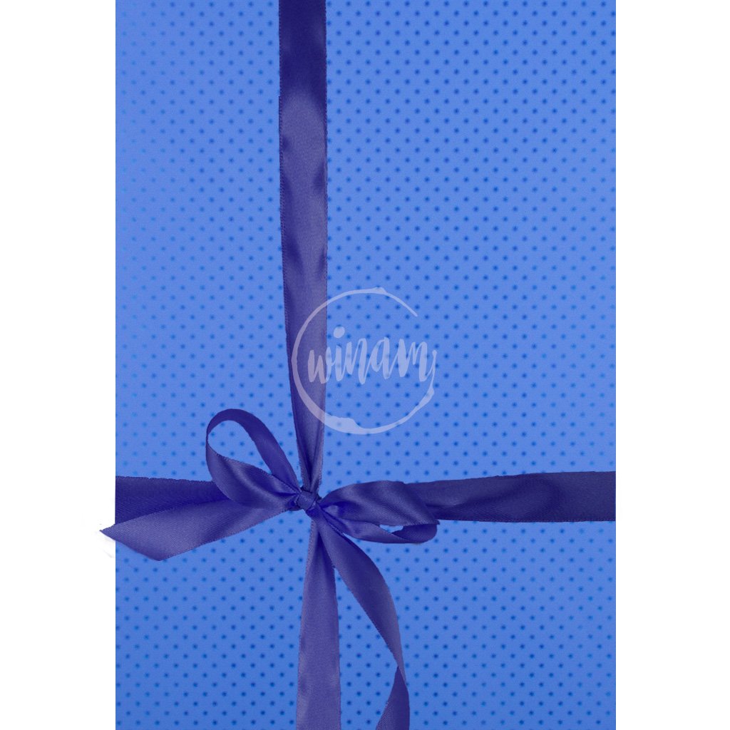 Nabízíme luxusní modrý balící papír s dekorem drobných lesklých hvězdiček, doplněných barevnou atlasovou stuhou. Máte-li jasno v barvě stuhy, napište nám svůj požadavek do poznámky v objednávce - pokud bude Vaše barva skladem, rádi vyhovíme!