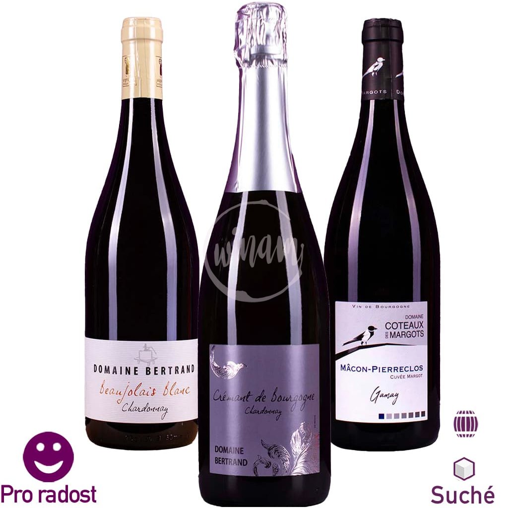- Pořadí degustace: 1. Crémant de Bourgogne, 2. Beaujolais Blanc, 3. Cuvée Margot Gamay