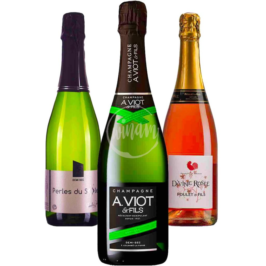 - Proč tato kombinace: Tři polosuché šumivé speciality z různých koutů Francie, každé s jiným charakterem a stylem