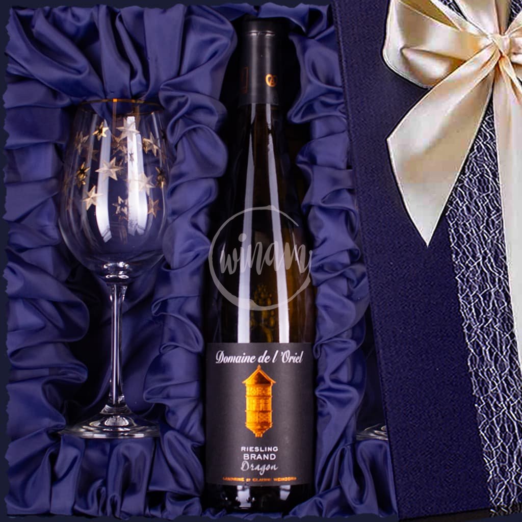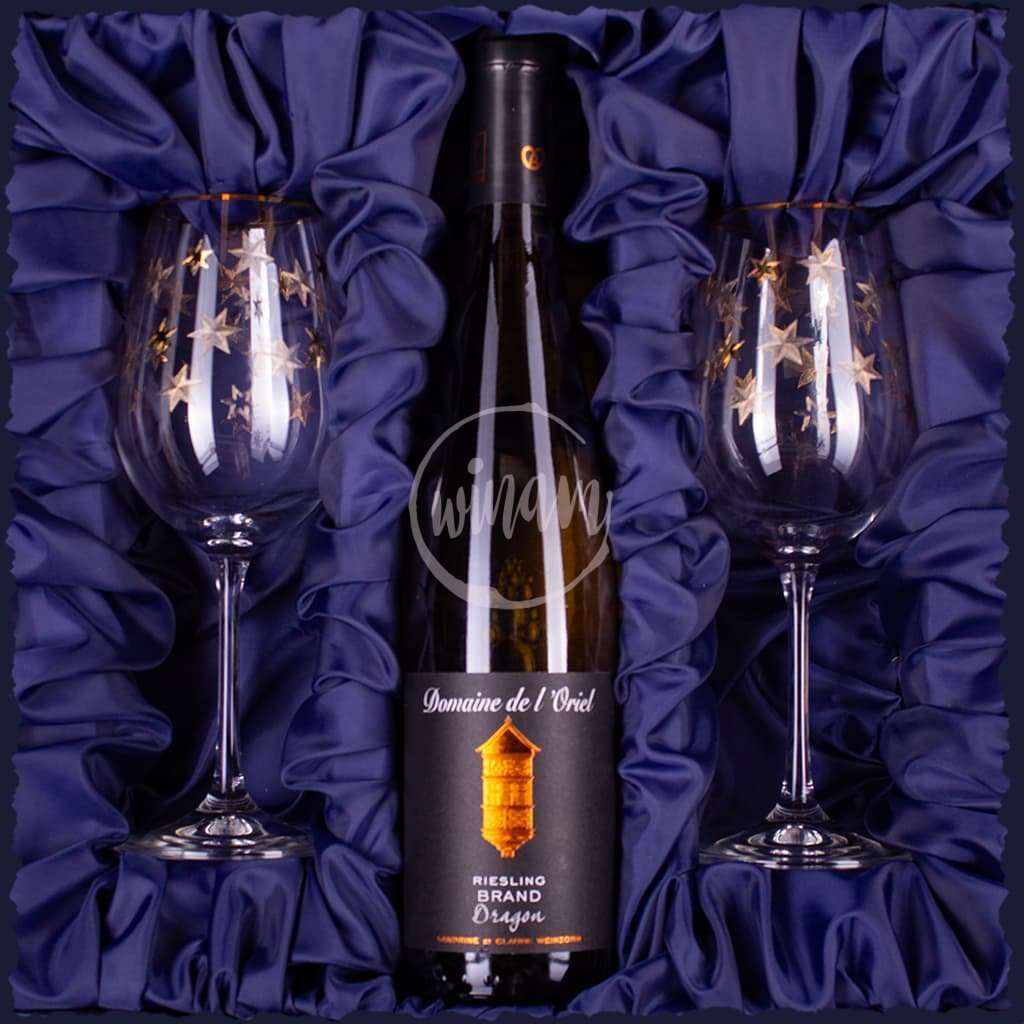 Dárková kazeta je vyrobena z pevného papírového kartonu zvolené barvy, je vyztužena polystyrenovou výplní, kterou zakrývá řasená dekorační textilie. Sklenice i víno jsou pevně zasazeny do polystyrenové výplně tak, aby je chránila proti nechtěnému pohybu při přepravě. Součástí produktu není dárkové zabalení - můžete si jej přiobjednat v příplatkových parametrech ve formě celofánu, dárkového papíru či široké stuhy.