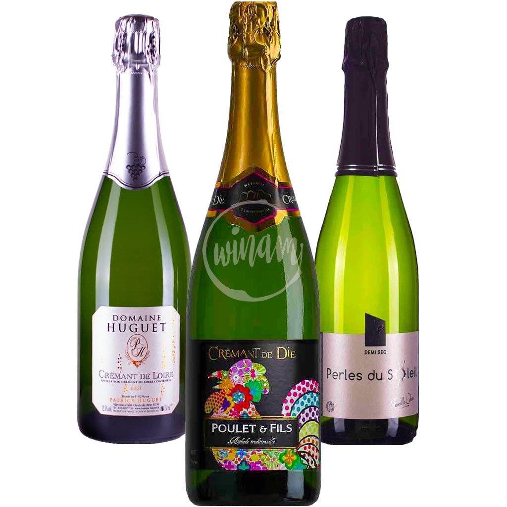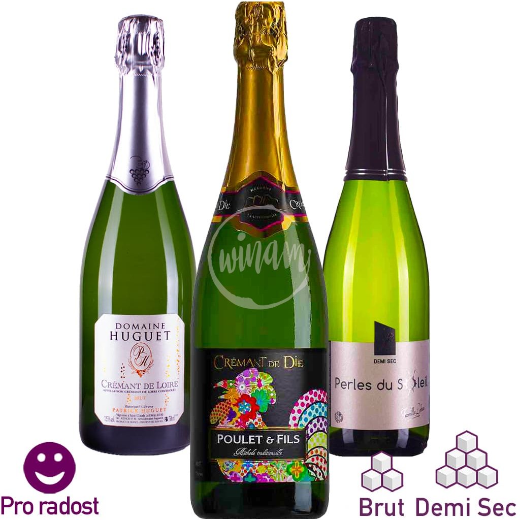 - Pořadí degustace: 1. Crémant de Loire Blanc, 2. Crémant de Die Blanc, 3. Perles du Soleil Blanc