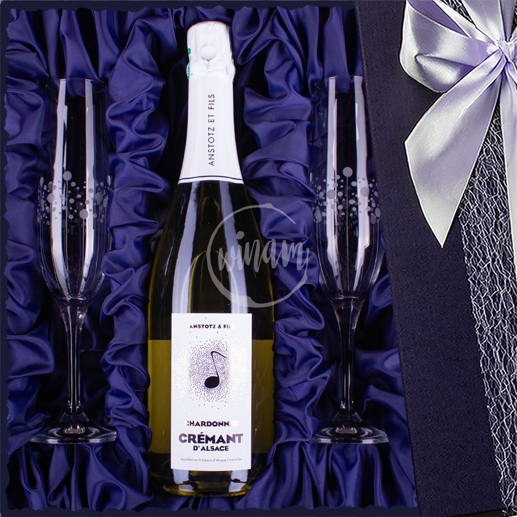 Alsaský Crémant z vinařství Domaine Anstotz et Fils, vyrobený z odrůdy Chardonnay. Byl vyroben tradiční šampaňskou metodou druhotného kvašení v láhvi. Ve vůni převažují tóny briošek, broskví a květů pomerančovníku. Chuťové buňky ovládnou jemné bublinky a příjemná svěžest s tóny nektarinek a červených grepů. Závěr je dlouhý, ovocný. Hodí se k sofistikovaným pokrmům z ryb, specialit z drůbežího masa nebo také k dezertům, ovocným koláčům nebo ke zmrzlině. Dokonale ladí také se šneky z listového těsta, se sýrem a bylinkami.