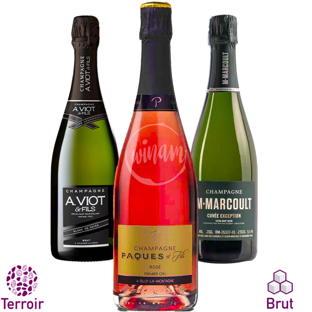 - Proč tato kombinace: Tři vinařství ze tří různých šampaňských subregionů — Montagne de Reims, Côte de Bar a Côte de Sézanne — každé s jiným charakterem půdy, odrůdami i stylem vinifikace
